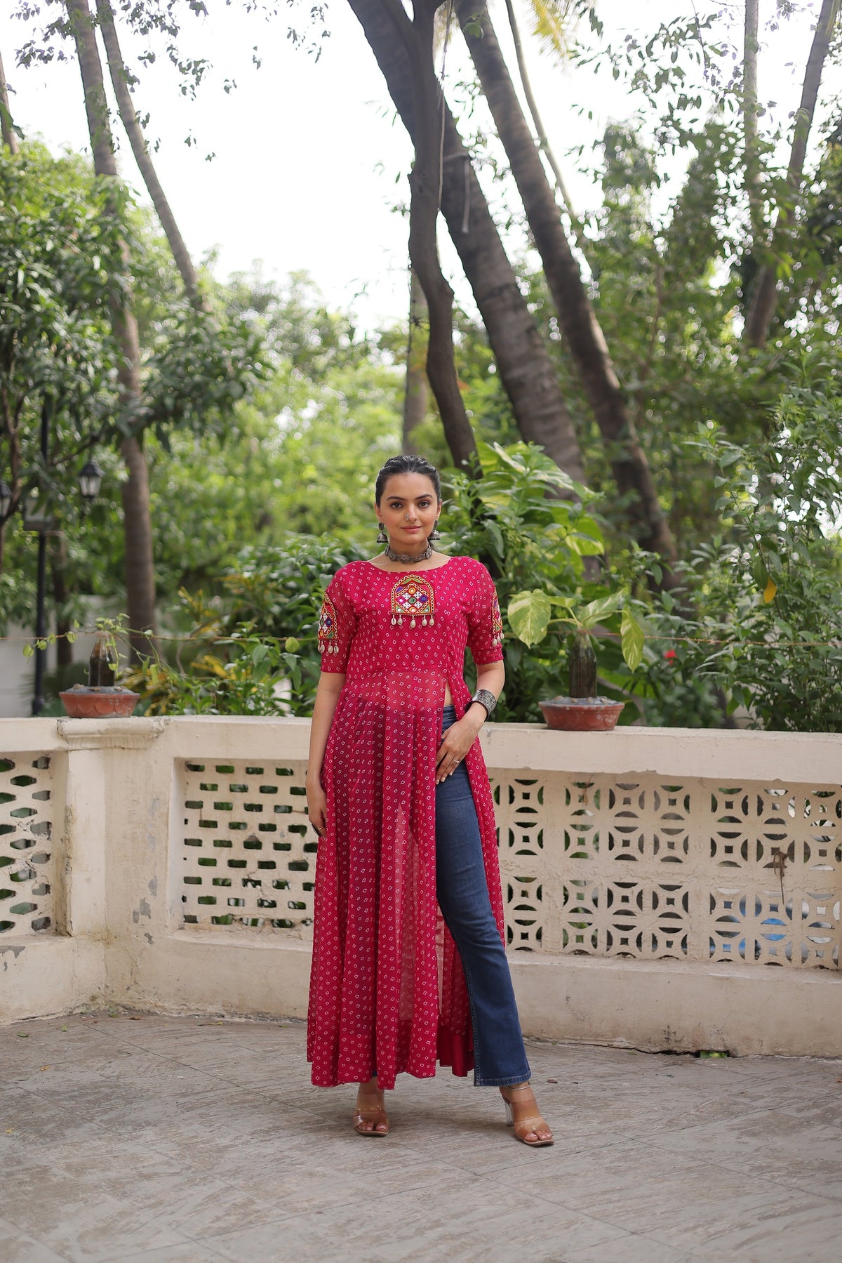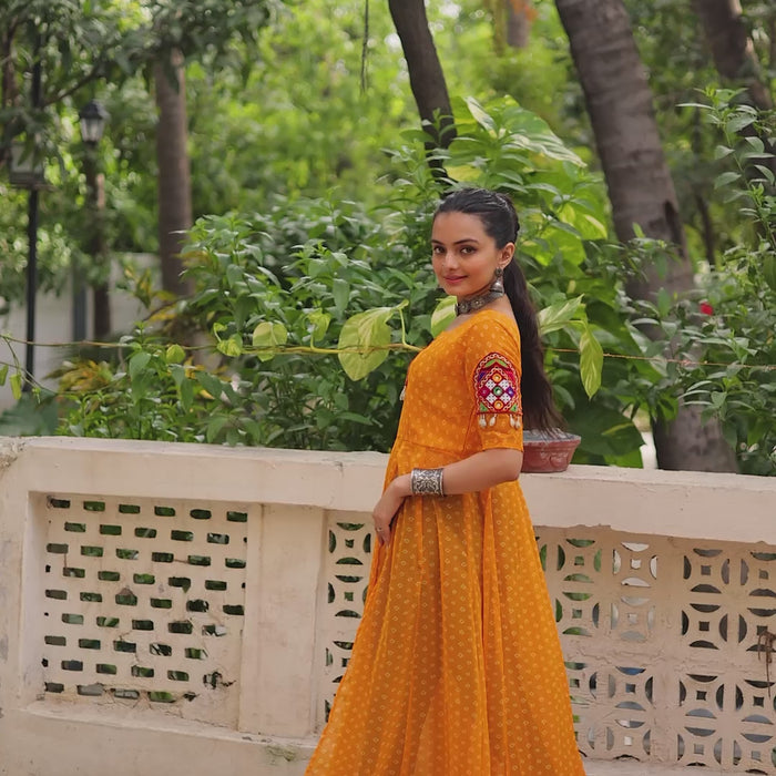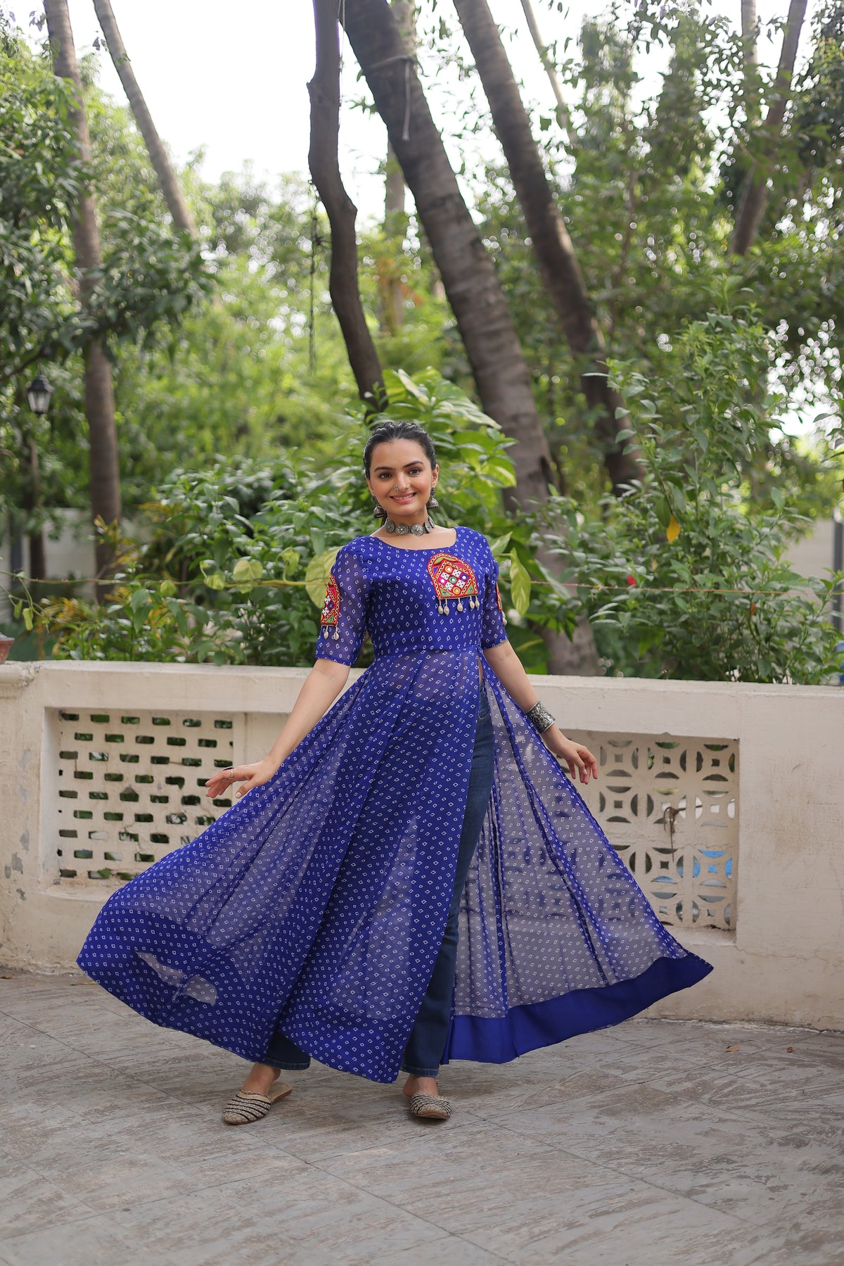 Bandhani Festive Long Kurti with Kutchi Patchwork for Navratri – Mayara Women Clothing
