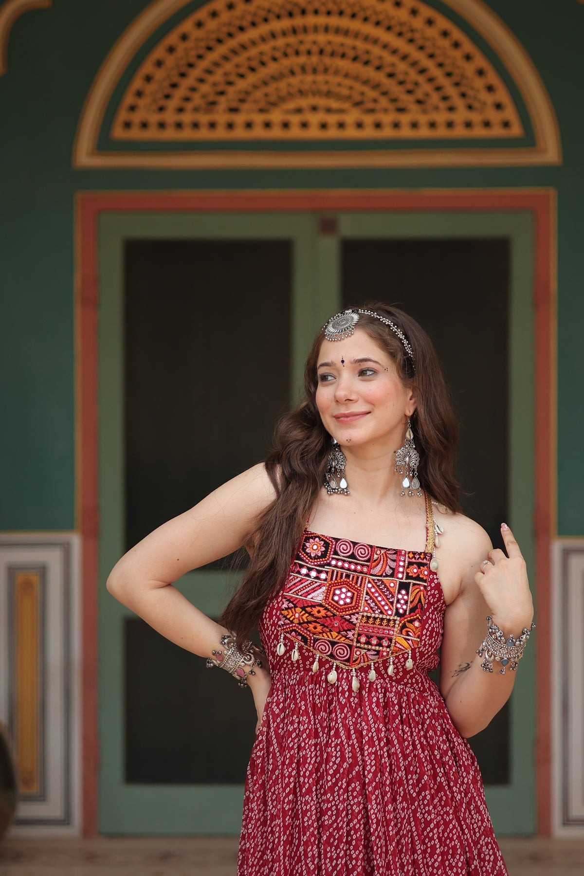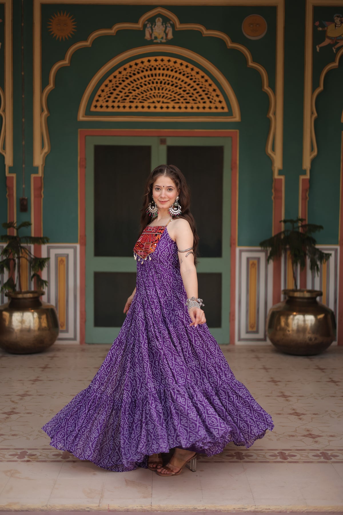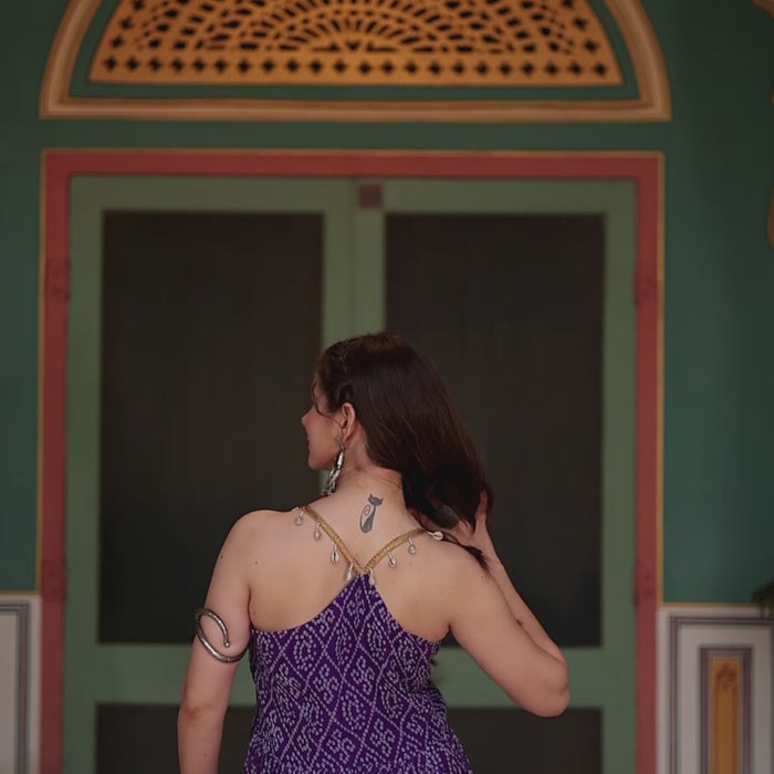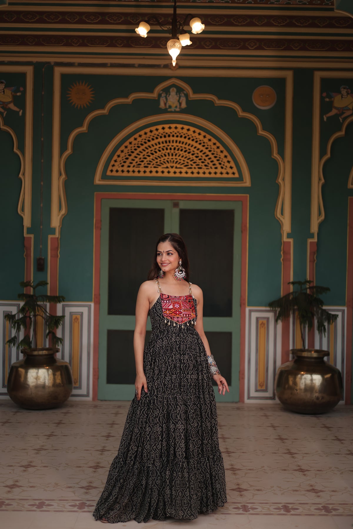 Black Bandhani Print Navratri Gown with Kutchi Patchwork | Mayara Women Clothing