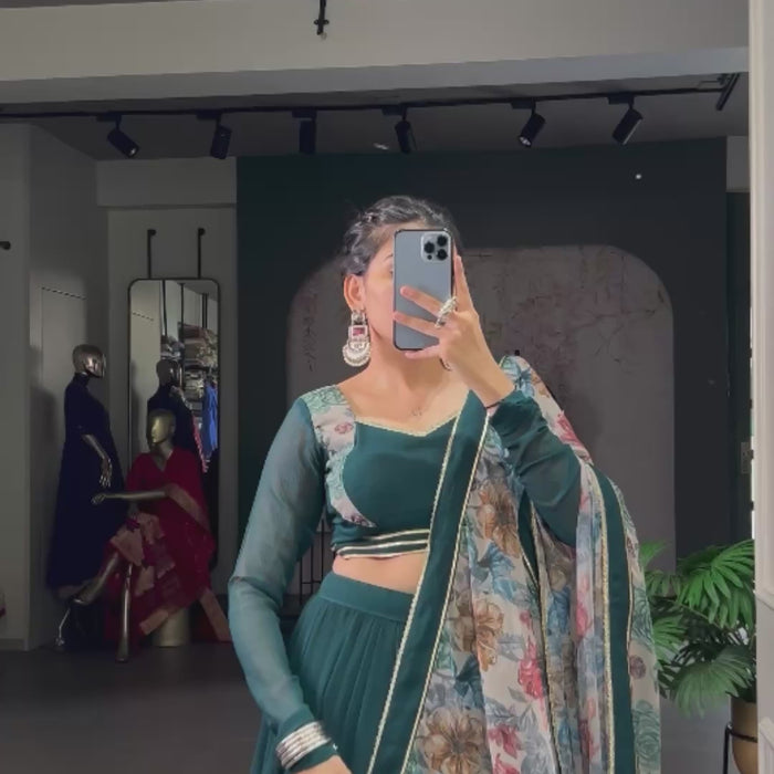 Dark Green Marble Lehenga Choli with Floral Printed Dupatta for Navratri – Mayara Women Clothing